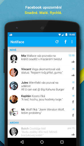 Notiface přenáší upozornění z Facebooku přímo do tvého androidu. Je malý, jednoduchý a rychlý.